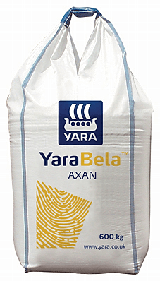YaraBela AXAN is a homogeneous, uniform-sized, high bulk density granular fertiliser for even spreading over wide bout widths and will spread consistently to 36m and beyond. Being a compound fertiliser both nitrogen and sulphur are contained in every granule which eliminates segregation and allows even application of all nutrients. Yara fertiliser bags now contain a minimum of 30% recycled plastic.